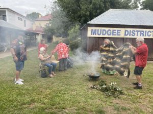 On 8 March 2026 members of the Warrabinga Aboriginal Corporation delivered two Mowgee Possum Skin Cloaks to Mudgee Museum and installed them in a special purpose upright glass exhibition cabinet. One is a community cloak and the other is a cloak for a newborn infant. The installation was preceded by a smoking ceremony to cleanse the cloak before installation.