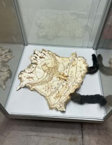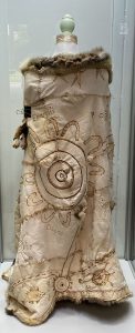The infant’s cloak was made from two possum skins and also includes artwork created using a pyrography tool.